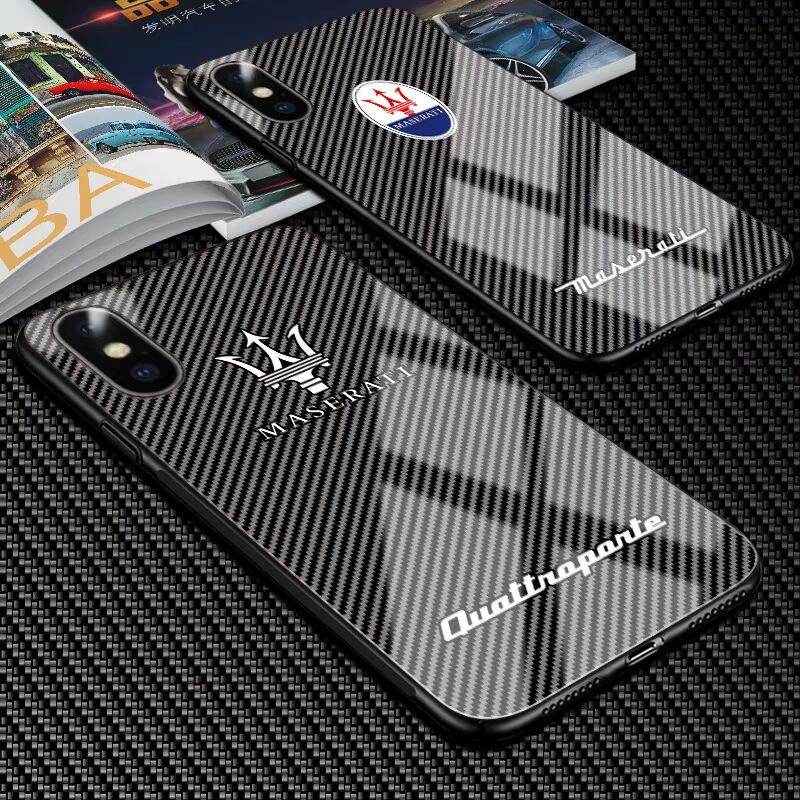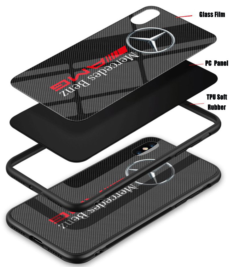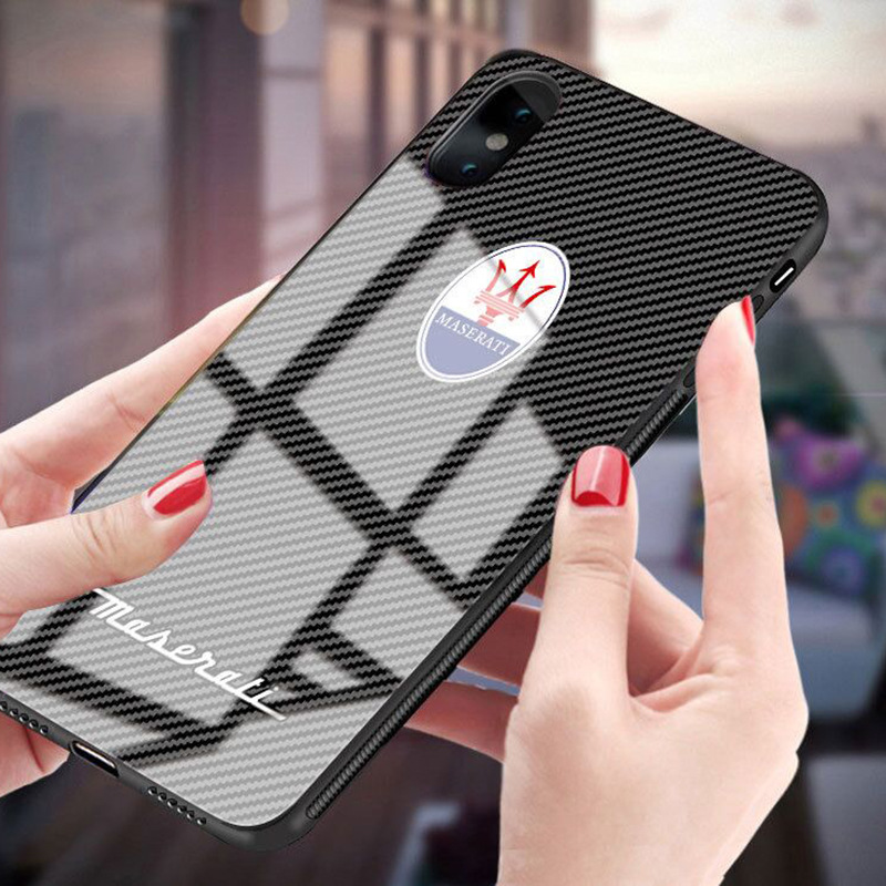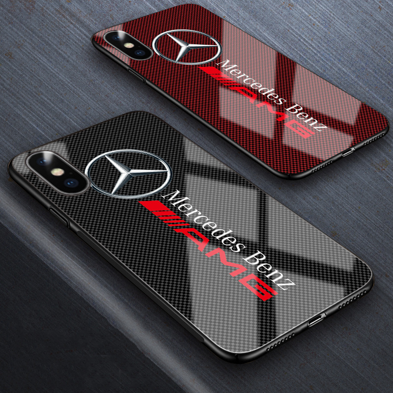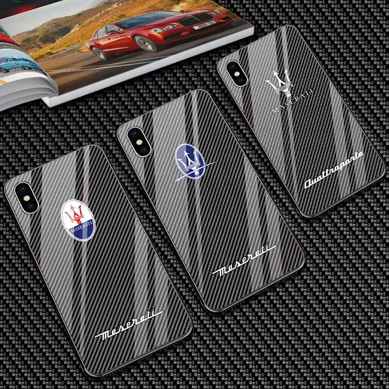 Mercedes-Benz Bentley Ferrari Maserati Auto 3D Logo Design Anti-Drop Tempered Glass Phone Case for iPhone