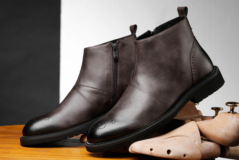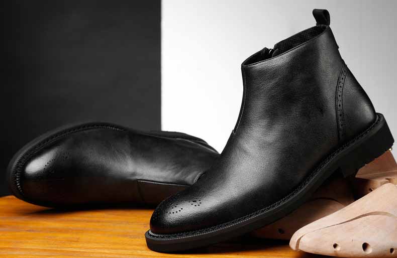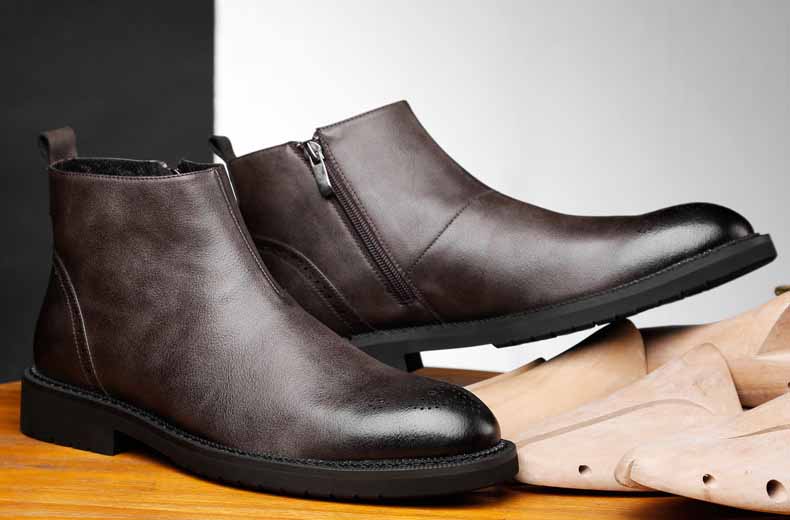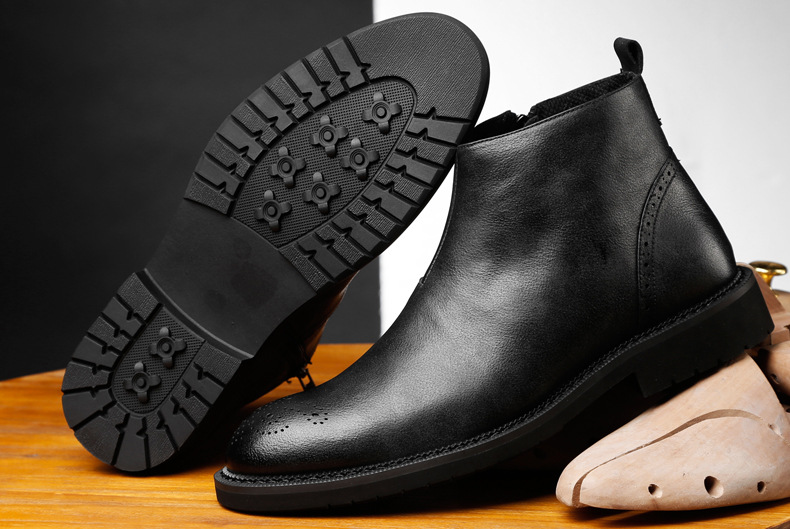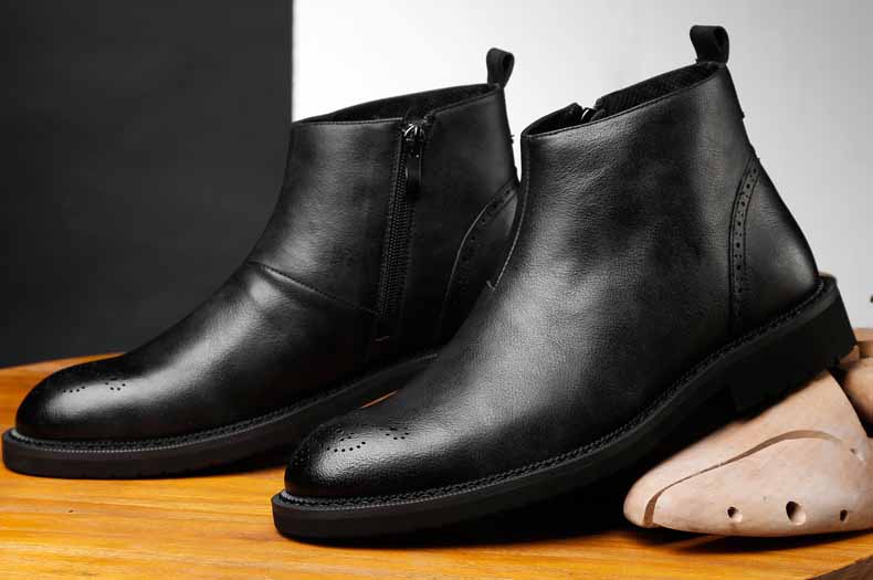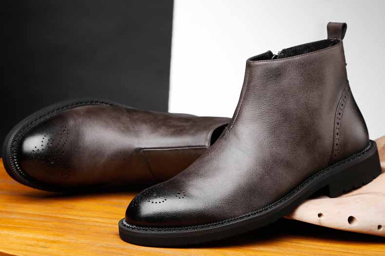 Botines de cuero genuino para hombres botas de vestir de cuero de vaca con cremallera