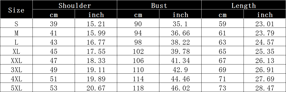 Hinweis: Die Maße sind alle in Anziehgröße. Bitte beachten Sie die Größendetails, um Ihre geeignete Größe auszuwählen.