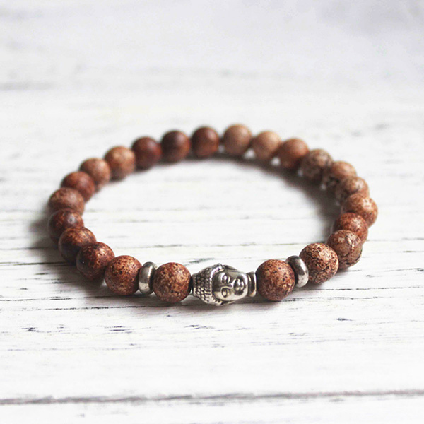 Pulsera de cabeza de Buda de ágata de piedra natural para hombre