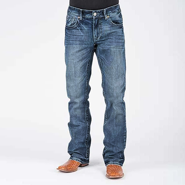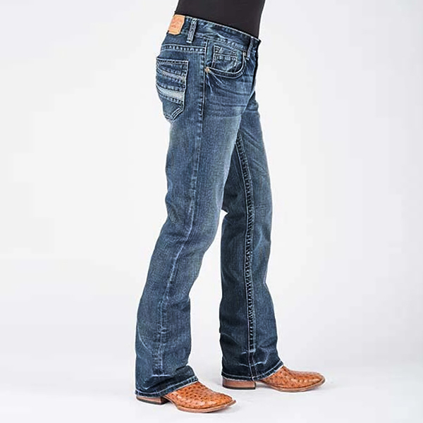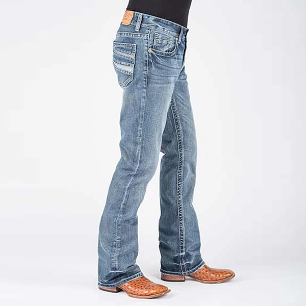 Jeans con corte de zapato piezo denim inverso de baja nobleza