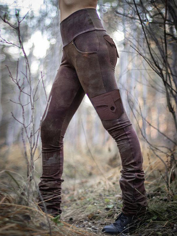 Damen Vintage Dye Multipocket Stretchhose mit hoher Taille