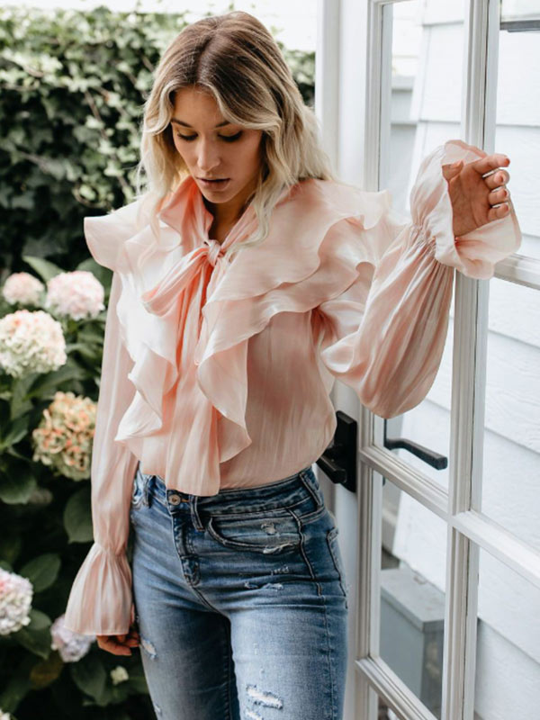 Panel de arrugas mariposa color natural para mujer con manga larga