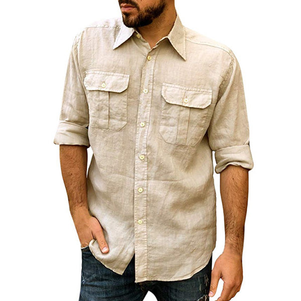 Vyriški kasdieniniai lininiai dvigubos kišenės atlapai ilgomis rankovėmis