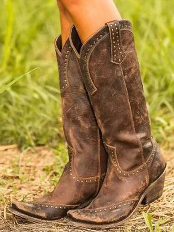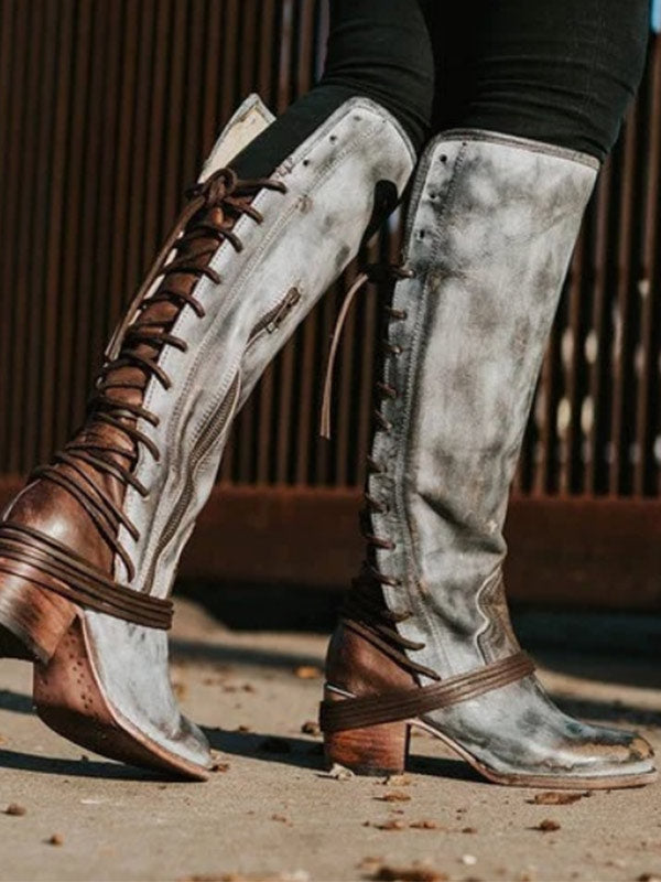 Damen Retro Rücken Schnürstiefel mit mittlerem Absatz über dem Knie