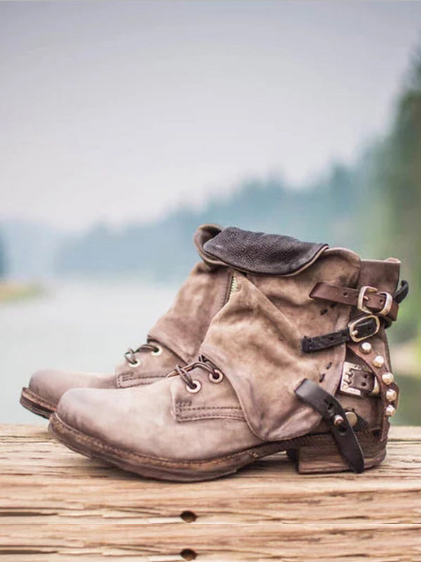 Vintage Vintage geschnitzte Martin-Stiefel mit kurzer Nietenschnalle aus Leder