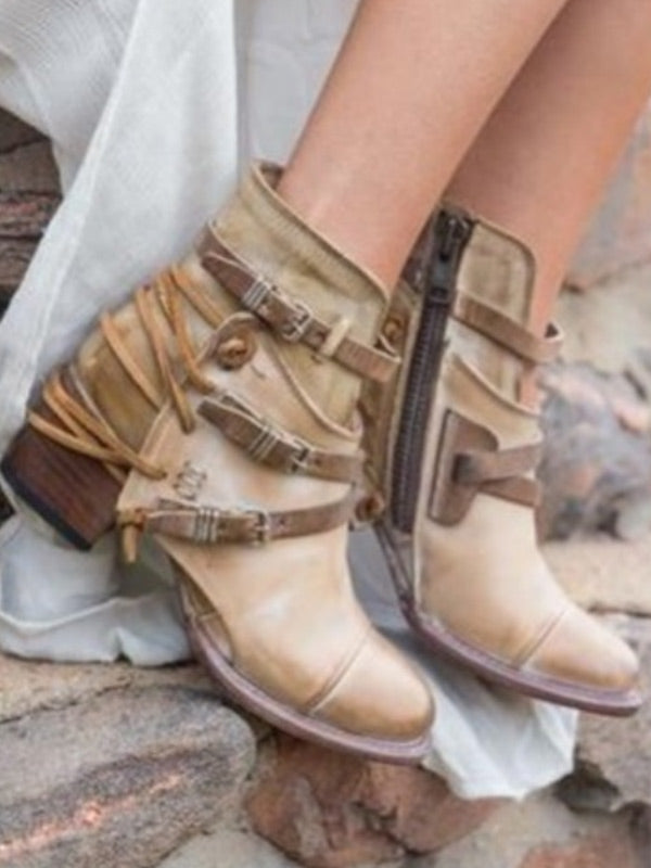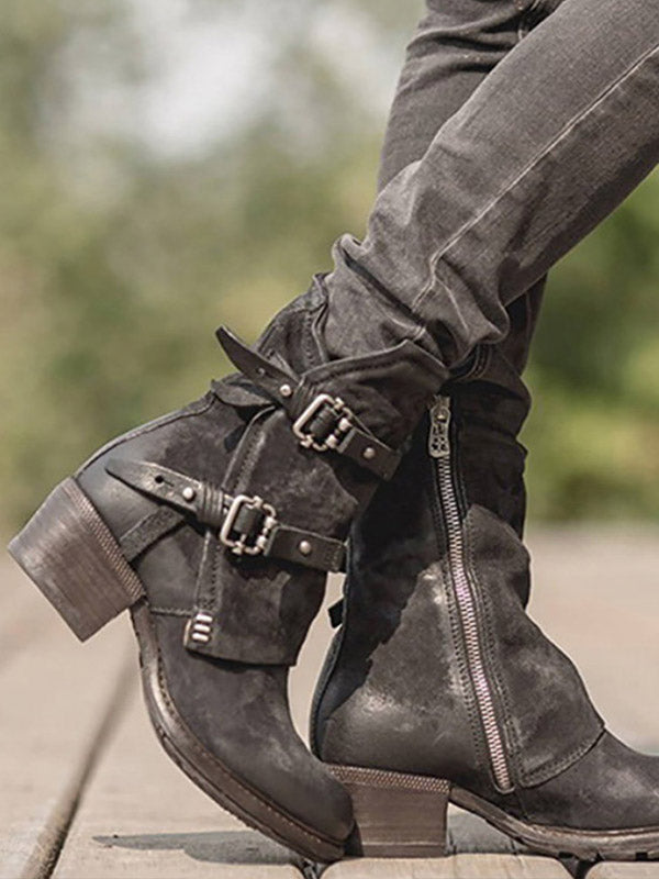 Cremalleras vintage de tacón grueso para mujer con tacones altos
