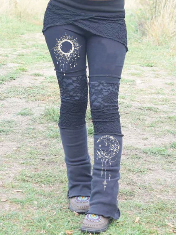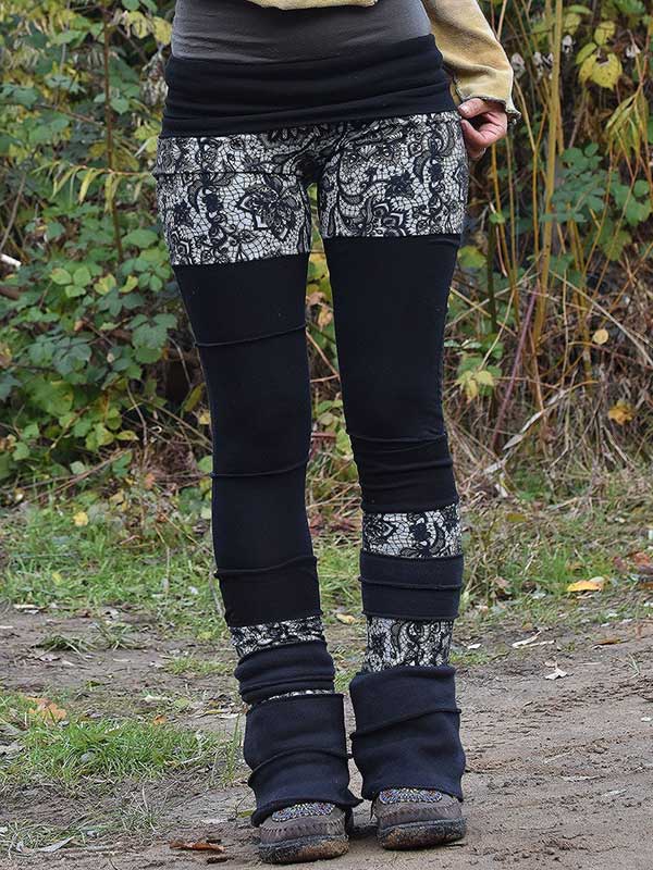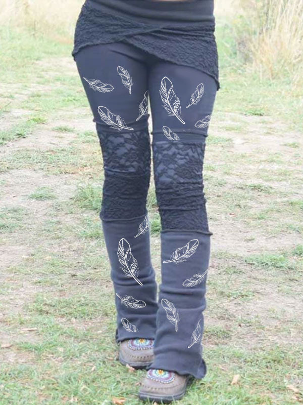 Damen Vintage Spitze Federdruck Nähte Stretch Freizeithose