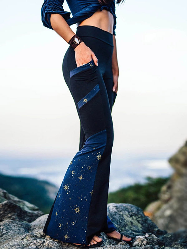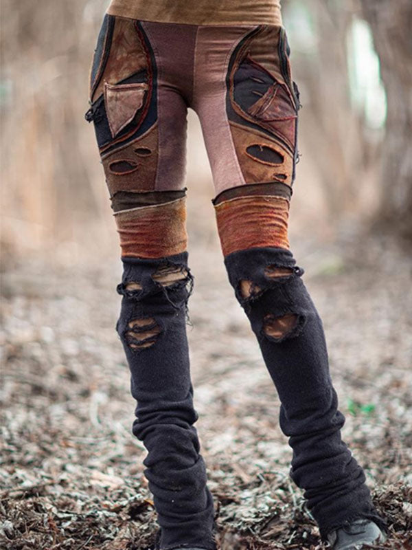 Retro colored patchwork pants for women