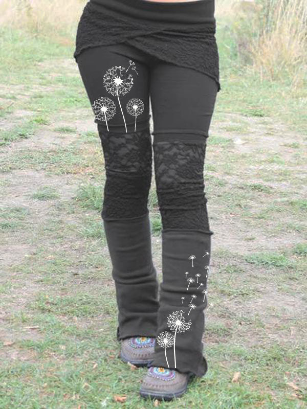 Damen Vintage Lace Print Patchwork Stretch Leggings