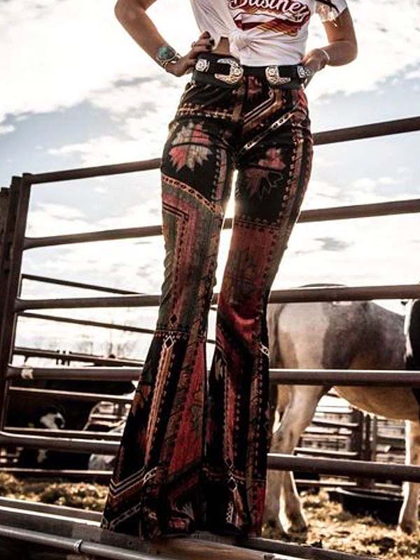 Pantalones de yoga elásticos de algodón con estampado geométrico vintage para mujer