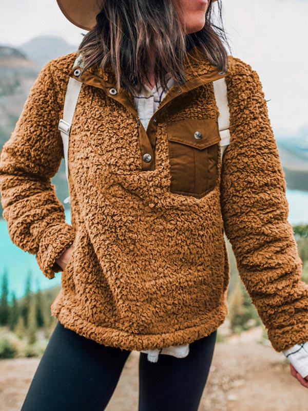 Vintage Vintage bedruckte geknöpfte Langarm Hoodie