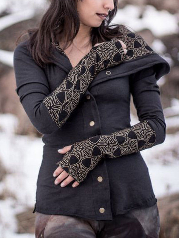Retro-flared hooded jacket with front sleeves for women