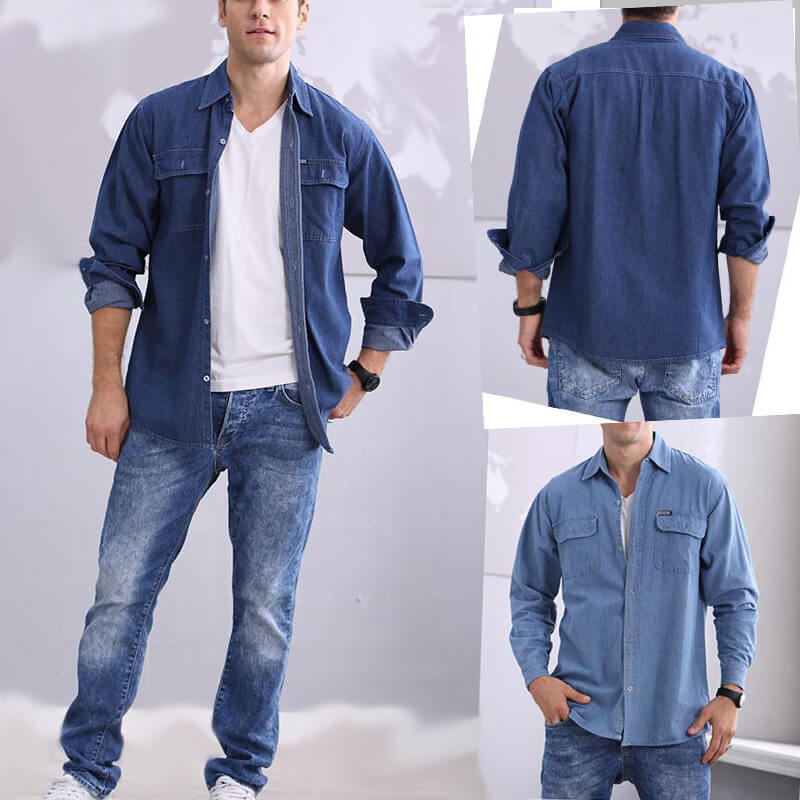 Vyriški kasdieniniai klasikinio verslo minkšti, patogūs džinsiniai marškinėliai ilgomis rankovėmis