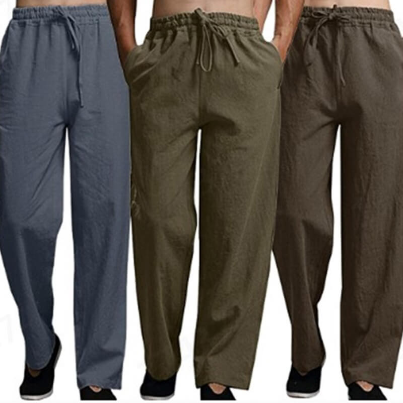 Vyriškos laisvalaikio pralaidžios kvėpuojančios virvės, elastinės juosmens lino kelnės
