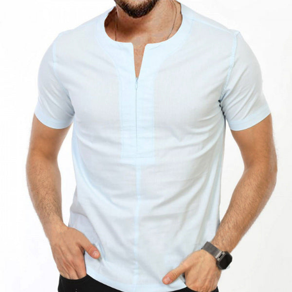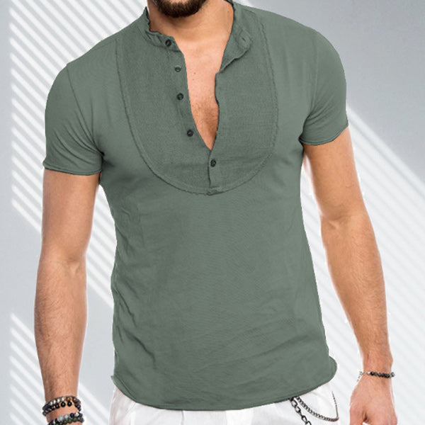 Vyriški marškinėliai trumpomis rankovėmis su plona stovinčia apykakle