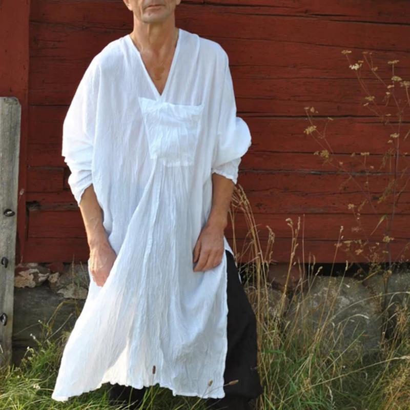 Camisa de lino liviana urbana con cuello en V y manga larga suelta urbana para hombre
