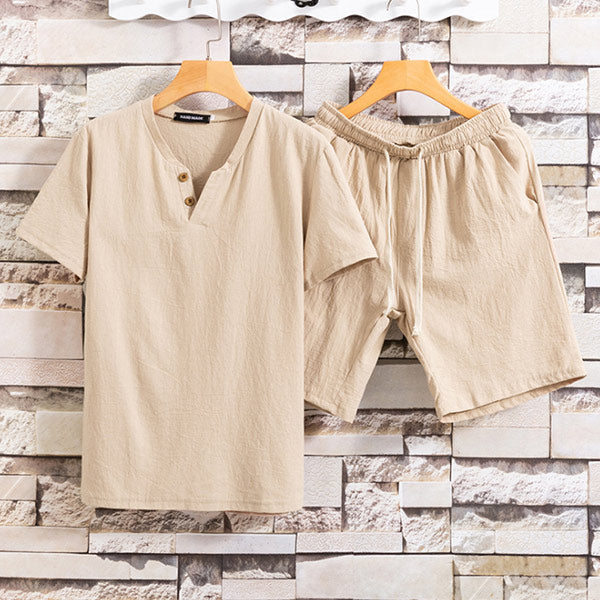 Camiseta versátil y cómoda de algodón y lino con cuello en V para hombre.