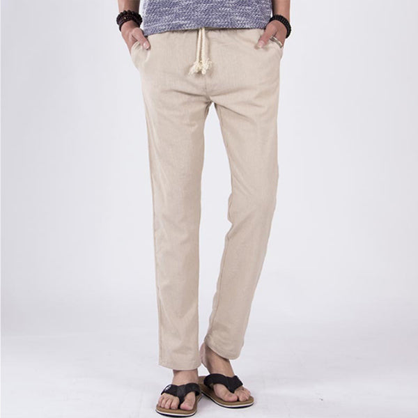 Camiseta de algodón y lino para hombre, lisa, fina, de manga corta.
