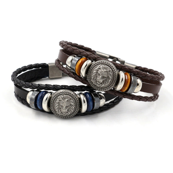 Pulsera vintage, de piel de vacuno trenzada, con un conjunto de tres partes.