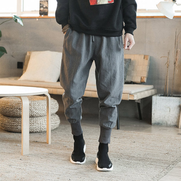 Pantalones casuales de algodón y lino de estilo chino para hombres