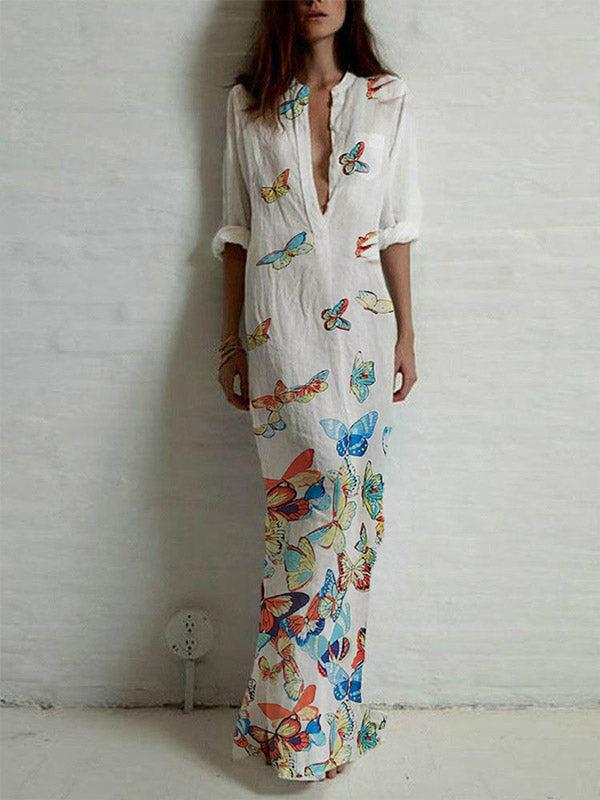 Para las mujeres, un vestido profundo con cuello y estampado de mariposa