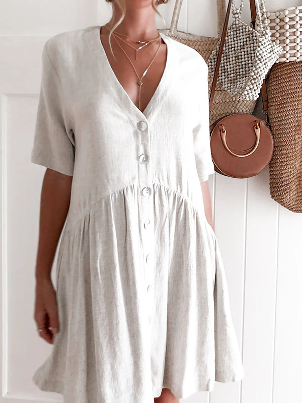 Vestido de botones con minivestido con cuello en v y bolsillo
